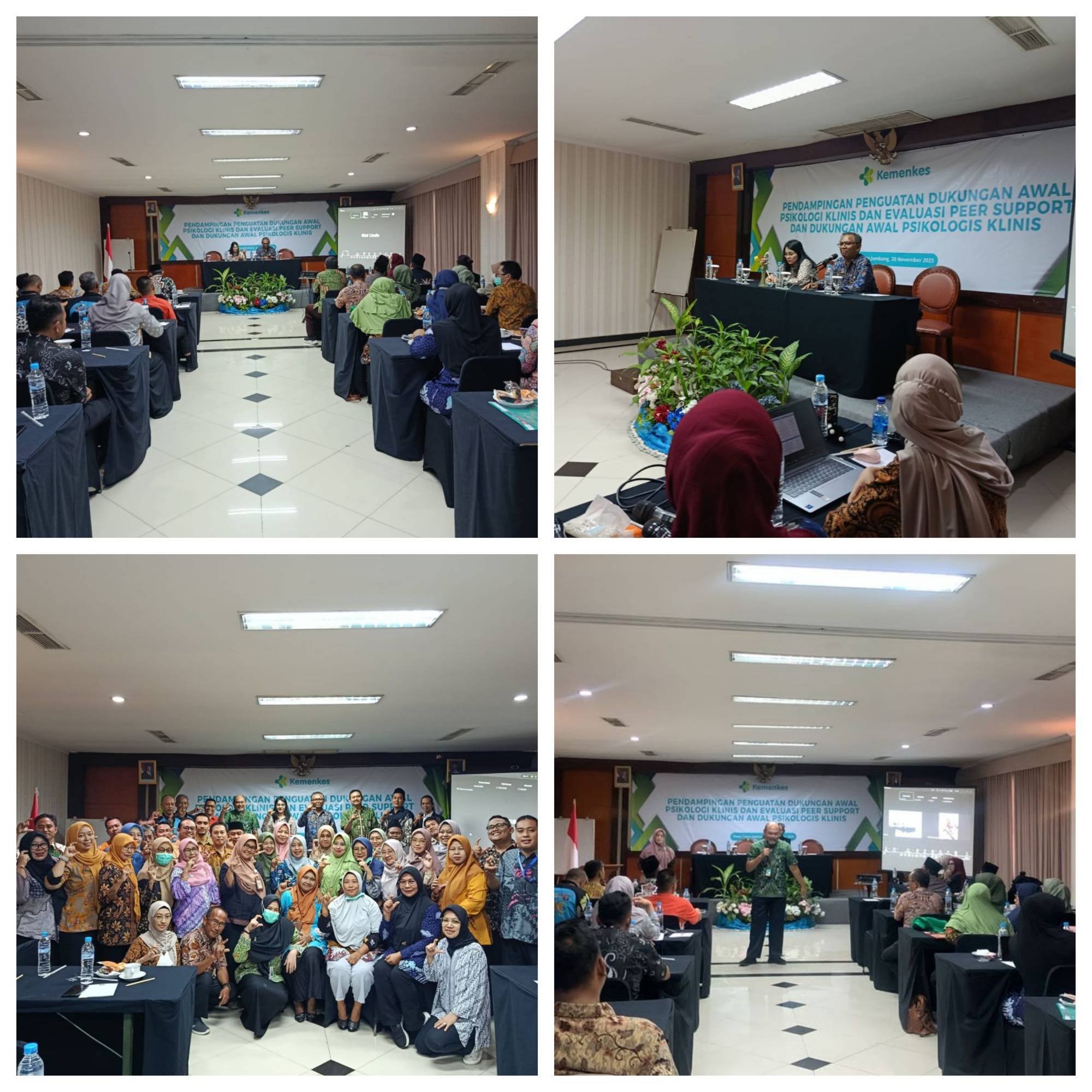 Direktorat Pelayanan Kesehatan Kelompok Rentan Kementerian Kesehatan Republik Indonesia melalui Tim Kerja Pelayanan Kesehatan Kelompok Rentan melaksanakan pertemuan Pendampingan Penguatan Dukungan Awal Psikologis Klinis dan Evaluasi Peer Support dan Dukungan Awal Psikologi Klinis Kamis (20/11) di Hotel Yusro Jombang. Pertemuan yang digagas Kementerian Kesehatan Republik Indonesia ini bertujuan sebagai tindaklanjut kegiatan pendampingan peer support dalam penguatan Kesehatan Jiwa di Masyarakat Kabupaten Jombang yang kegiatannya dimulai beberapa bulan yang lalu kerjasama dengan LKC Dompet Dhuafa dan Dinas Kesehatan Kabupaten Jombang kata dr. Minerva Ketua Tim Kerja Pelayanan Kesehatan Kelompok Rentan saat membuka pertemuan.