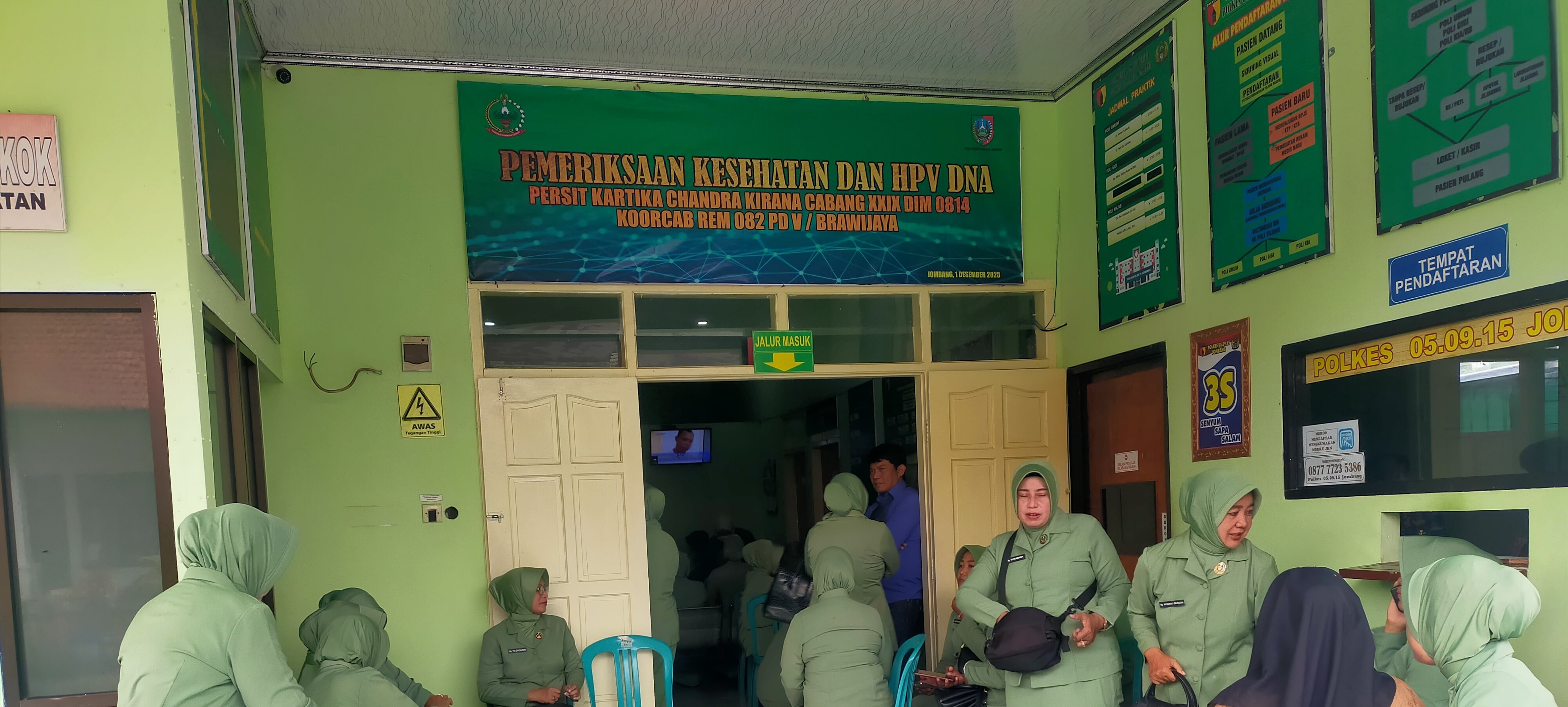 Senin (01/12) bertempat di Polkes Kodim 0814 Jombang dilaksanakan kegiatan skrining HPVDNA untuk anggota Persit Kodim 0814 Jombang. Skrining HPVDNA adalah pemeriksaan medis untuk mendeteksi keberadaan DNA dari virus Human Papillomavirus (HPV) yang berisiko tinggi, yang dapat menyebabkan perubahan sel menjadi kanker serviks.