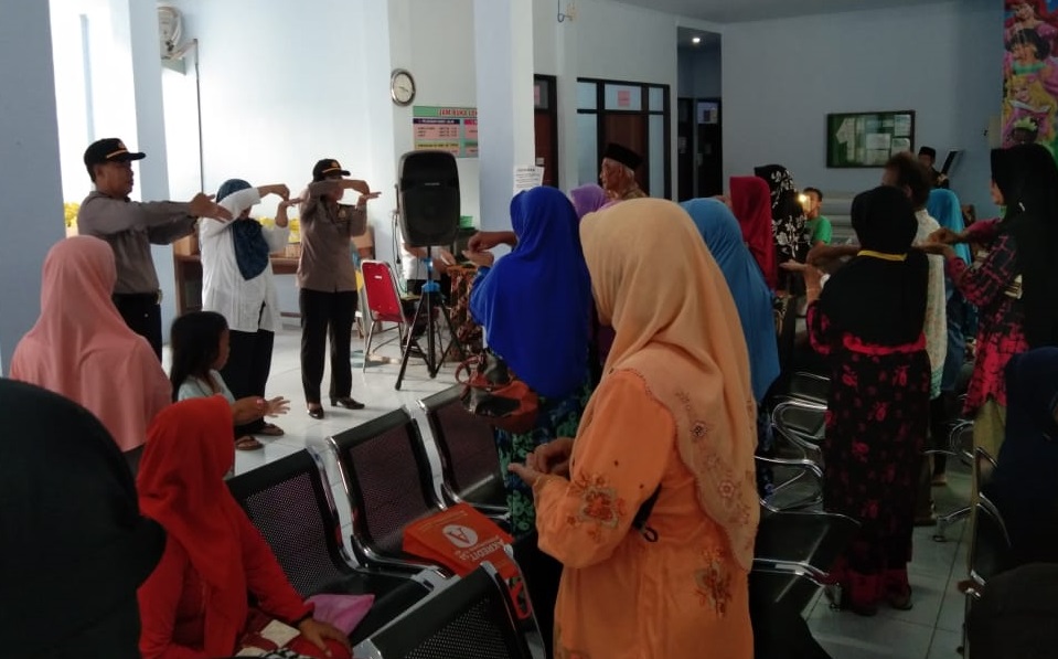 Jombangkab-Dinkes. Sosialisasi covid-19 disampaikan oleh Kepala Puskesmas Mayangan dr. Dyah Ayu Yulyastuti bersama Wakapolsek & tim polsek Jogoroto pagi jam 08.30 dihari Rabu 18-3-2020 bertempat ruang tunggu pkm Mayangan Jogoroto Jombang. dr. Dyah Ayu Yulyastuti menyarankan agar masyarakat untuk tidak panik akan berita tentang corona, dengan hidup sehat dapat dipastikan tidak akan terkena virus corona.Diharapkan pada masyarakat yang mengalami batuk pilek panas serta nyeri tenggorokan agar segera periksa ke Puskemas agar segera mendapatkan pengobatan. Upayakan untuk selalu menjaga kebersihan diri minimal dengan cuci tangan dan memakai APD (Alat Pelindung Diri) berupa masker bl sakit. Cara cuci tangan sangat sederhana dengan menggunakan sabun & air mengalir atau menggunakan hand sanitizer, gunakan 6 langkah mudah. Pada kesempatan ini juga diperagakan cara cuci tangan 6 langkah, Cara pakai masker & Etika batuk yg benar di depan pasien & pengantar pasien.