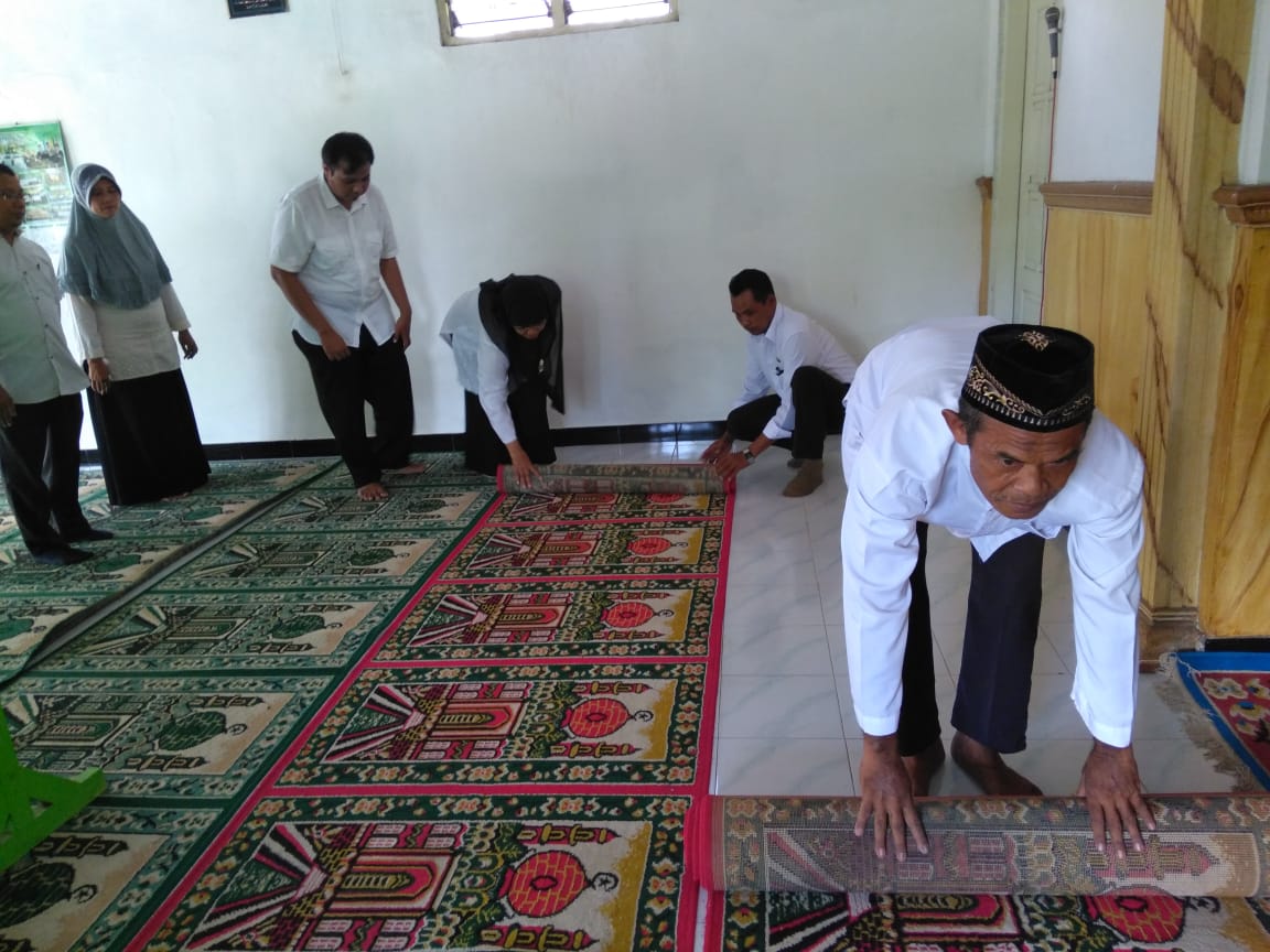Selanjutnya dengan disaksikan kepala Puskesmas Dukuhklopo, kepala Desa Dukuhklopo dan semua tim, ketua Takmir Musholla Bahrus Salam menggulung karpet di musholla dan berjanji akan mencucinya bersama warga sekitar.